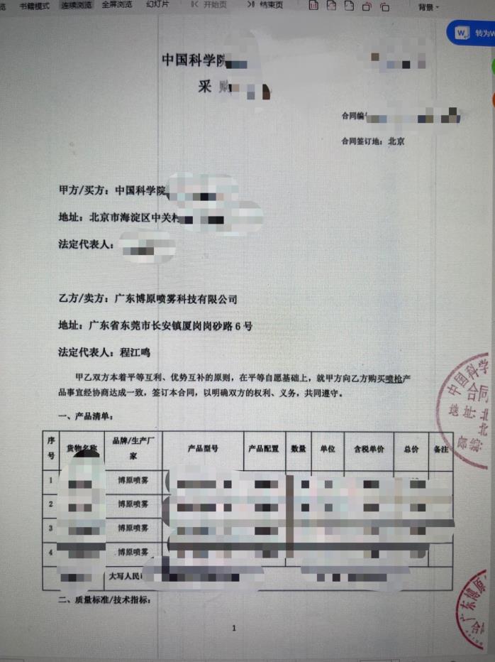 2021年10月廣東博原噴霧科技有限公司與中國科學(xué)院簽訂合作協(xié)議,為中科院提供噴嘴打樣生產(chǎn)服務(wù),博原總經(jīng)理葉總表示,將會保質(zhì)保量完成訂單,為中國航天工程提供一份力量。