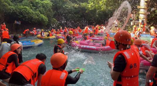 古龍峽的刺激漂流也似乎喚起了大家尋樂的童心,河道中順著水流你追我趕,一旦在平坦處“相撞”少不了要一場戲水激戰(zhàn)。飛濺的河水浸透了衣服,大家卻沉浸在快樂里。