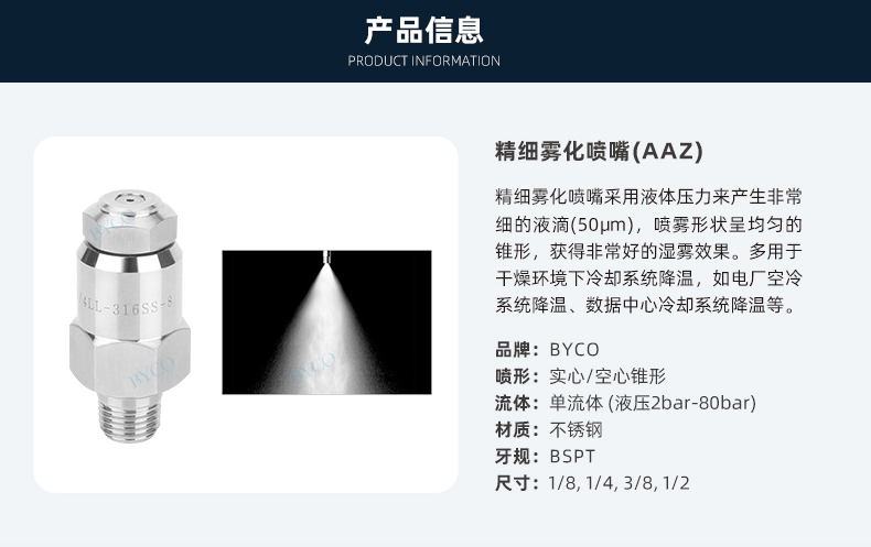 液滴大小為非常細(xì)小,形成霧狀噴霧效果。壓力和流量適用范圍廣。