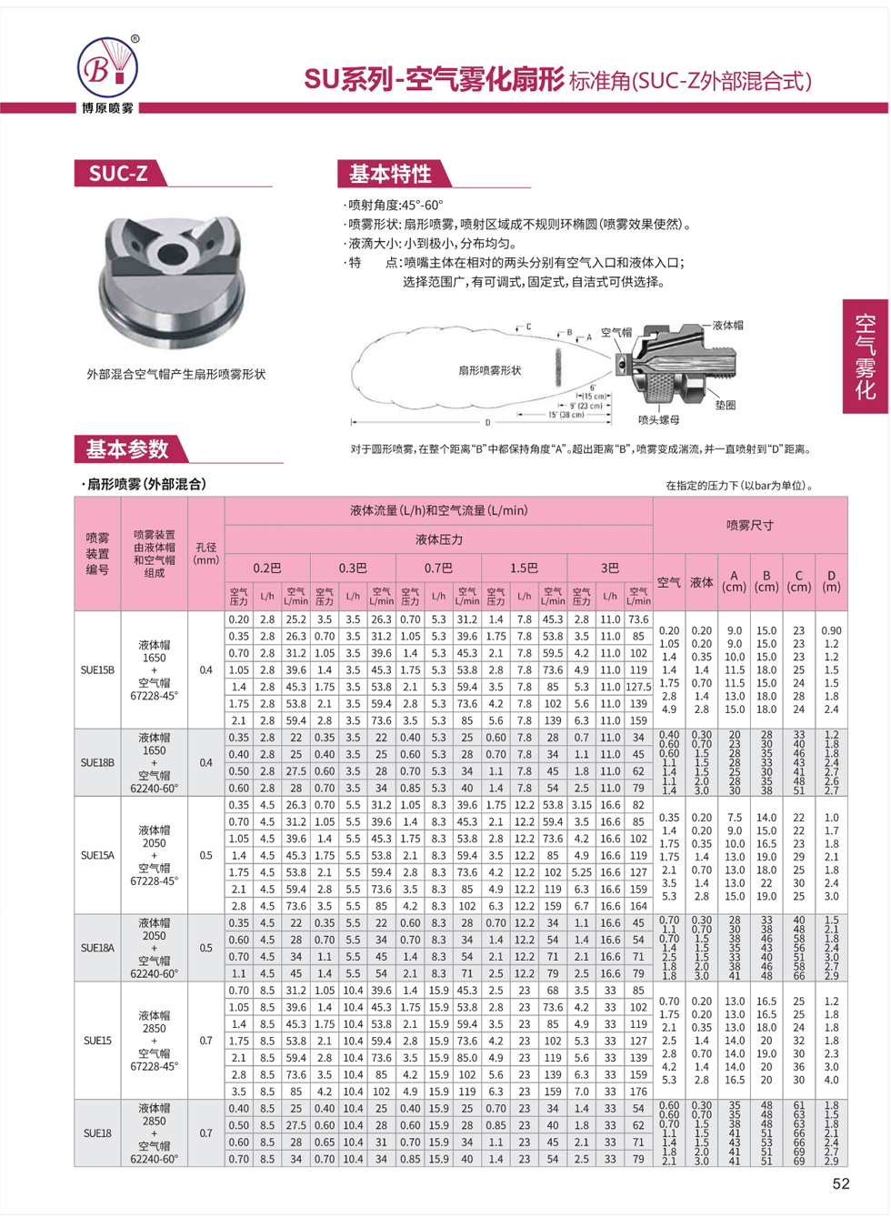 噴嘴主體分別有空氣入口和液體入口,選擇范圍廣,有可調式、固定式、自潔式可供選擇。