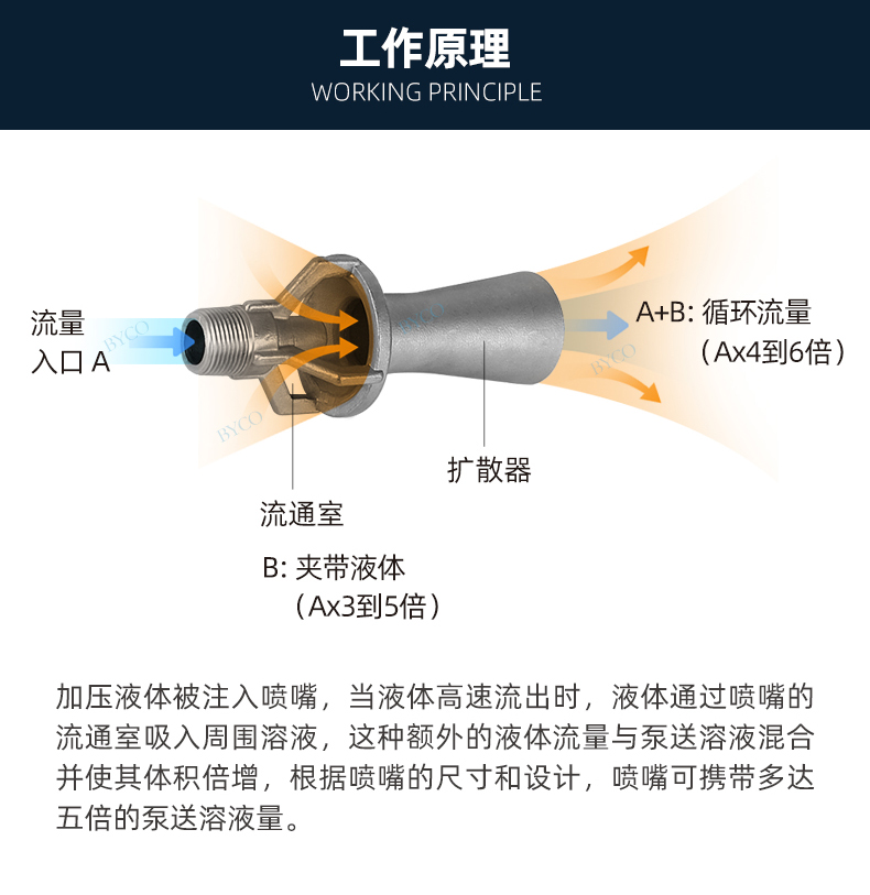 根據berboulli射流引力原理,使得工作射流與被吸引液體以1:4混合擴散。