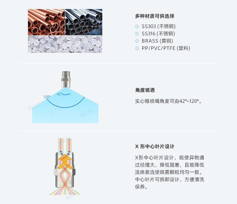 內(nèi)部為葉片、大流量通道設(shè)計,保證和控制噴霧的均勻分布。