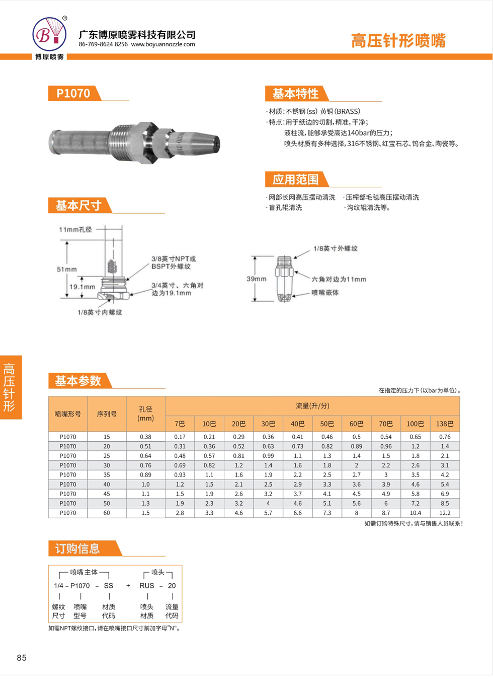 • 高壓針形水針噴嘴(P1070)